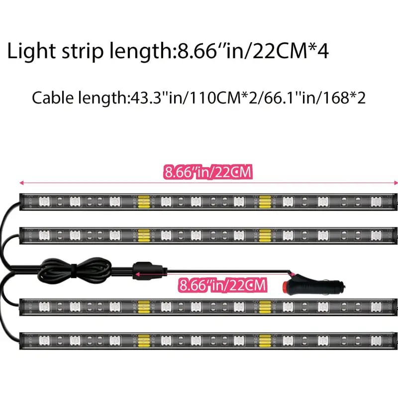 4 LED Smart Car Light Strips, 12V Music Synchronized Color-changing Light Strips, App, 44-key Remote Control, DIY Mode Brightness Adjustment Lights, For Various Car Models