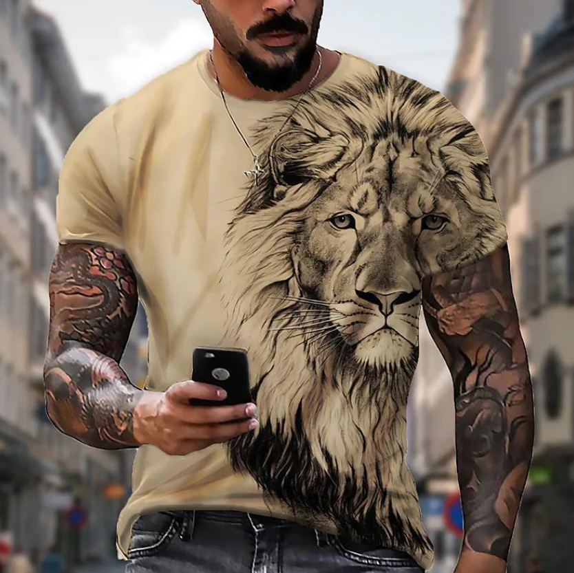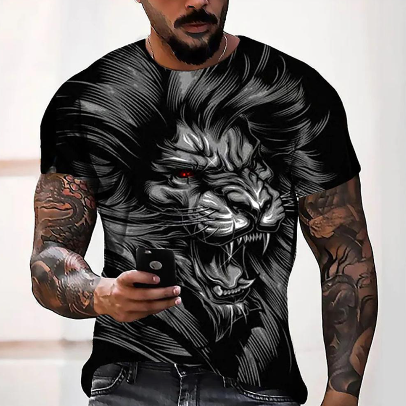 Introducing this captivating men's 3D printed t-shirt, a must-have addition to your summer wardrobe for embracing the wild and bold fashion. The lifelike 3D printed image of an animal lion makes this t-shirt stand out, adding a unique and daring statement to your summer outfits.