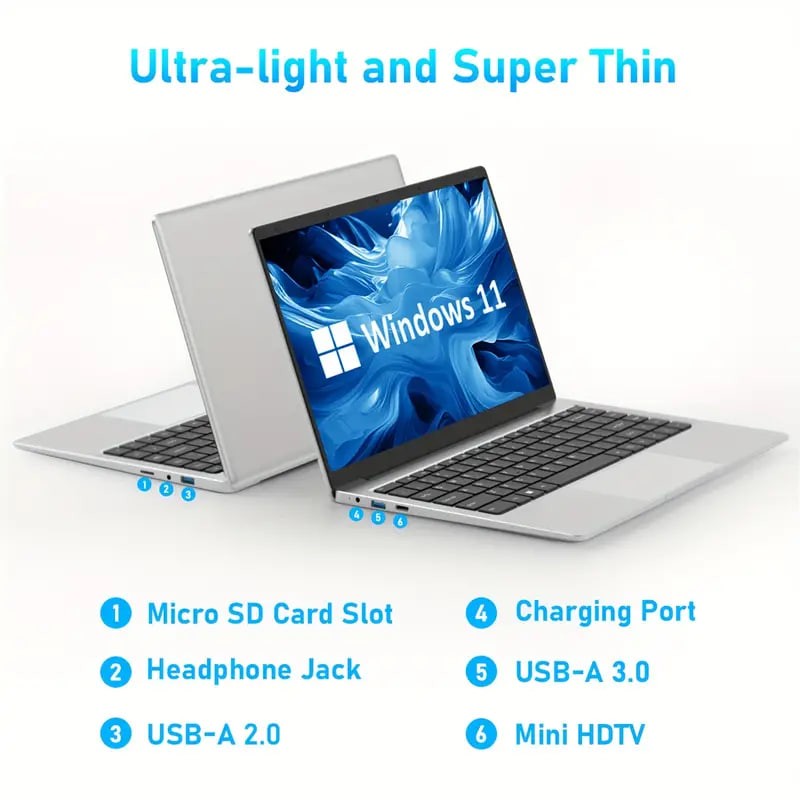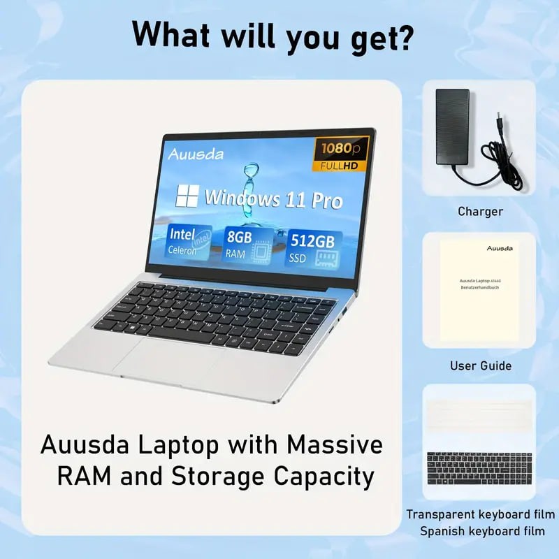 Auusda Laptop With 8GB LPDDR4 512GB SSD, Intel Celeron J4125 Up To 2.5 GHz, 14.1 1920x1080 IPS, Webcam, Mini HD, USB-A X 2, Micro SD Card Slot, Windows 11 Pro, Expandable Storage details 1Auusda Laptop With 8GB LPDDR4 512GB SSD, Intel Celeron J4125 Up To 2.5 GHz, 14.1 1920x1080 IPS, Webcam, Mini HD, USB-A X 2, Micro SD Card Slot, Windows 11 Pro, Expandable Storage details 1