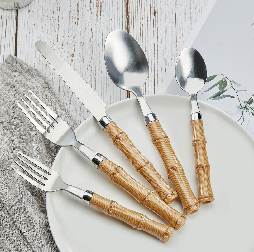 Bamboo Silverware Set, Hoften Bamboo Utensils Set for 4, 20 Piece Flatware