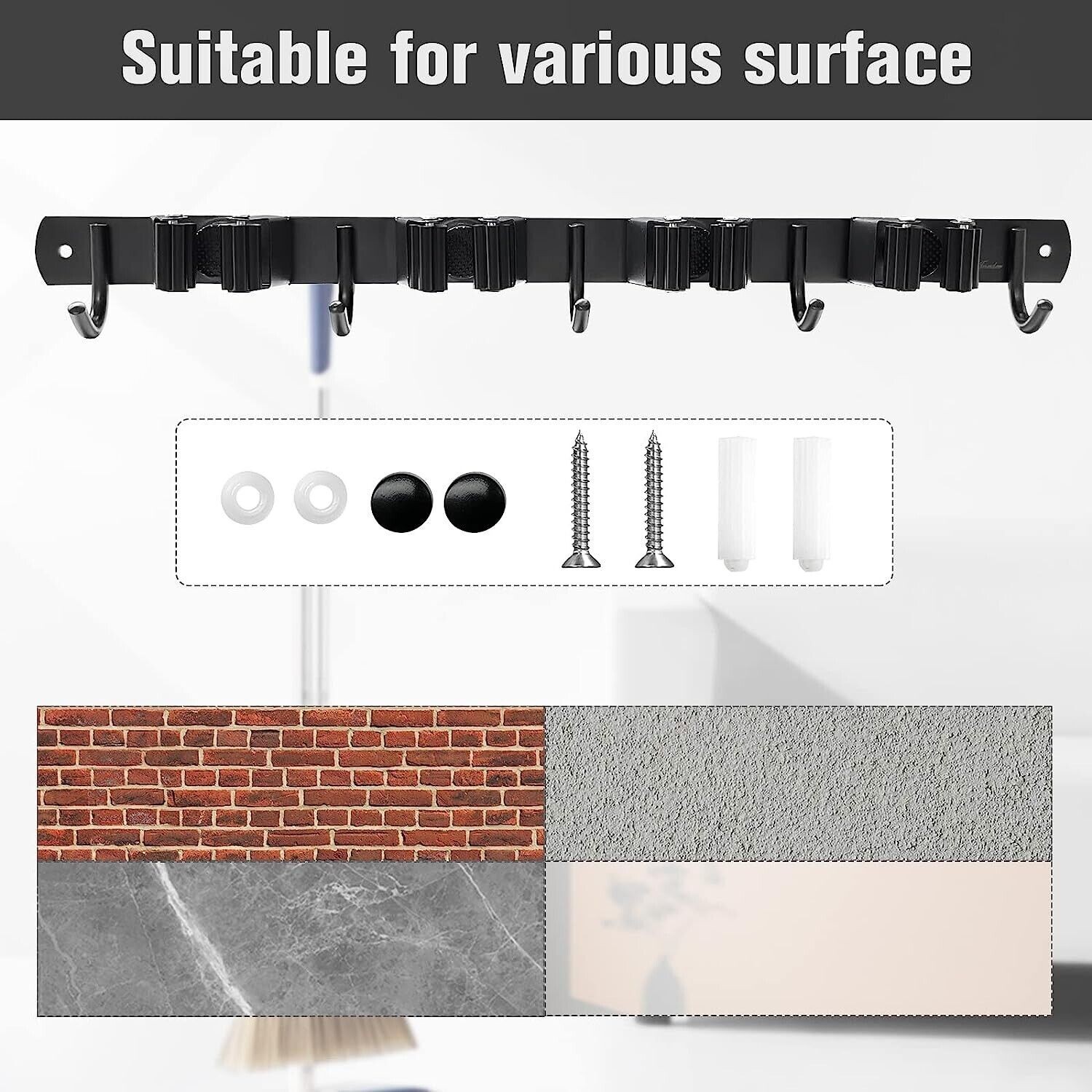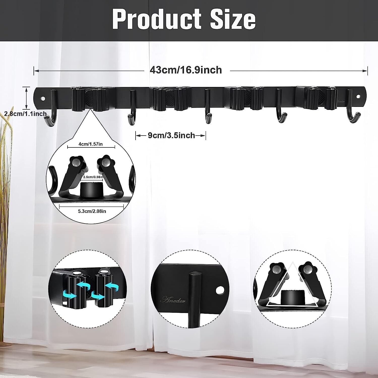 Broom Holder Wall Mount 4 Racks and 5 Hooks Broom Organizer Stora