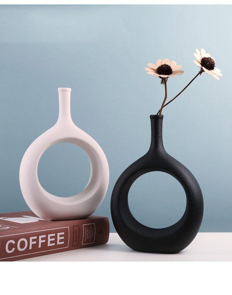 Ceramic Hollow Out Flower Vase Figurines Nordic Modern Planter Pots Desktop