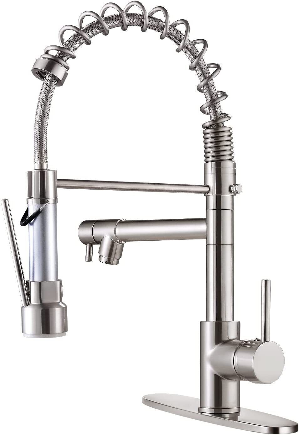 Kitchen Faucet Swivel Single Handle Sink Pull Down Sprayer Mixer Tap Deck Plate