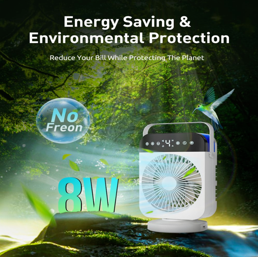 ❄Mini portable air conditioner can save your money and blows cooling wind, keeps your skin moisture and enjoy fresh air, which is very easy and portable to carry & move. It can be multifunctional as a combination of a mini air conditioner, desk fan, misting fan, night light, and humidifier.