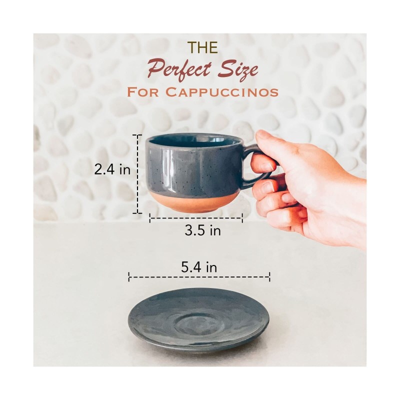 Mora Ceramics 8oz Cappuccino Mug Set of 4 - Ceramic Coffee Cups with Saucers ...