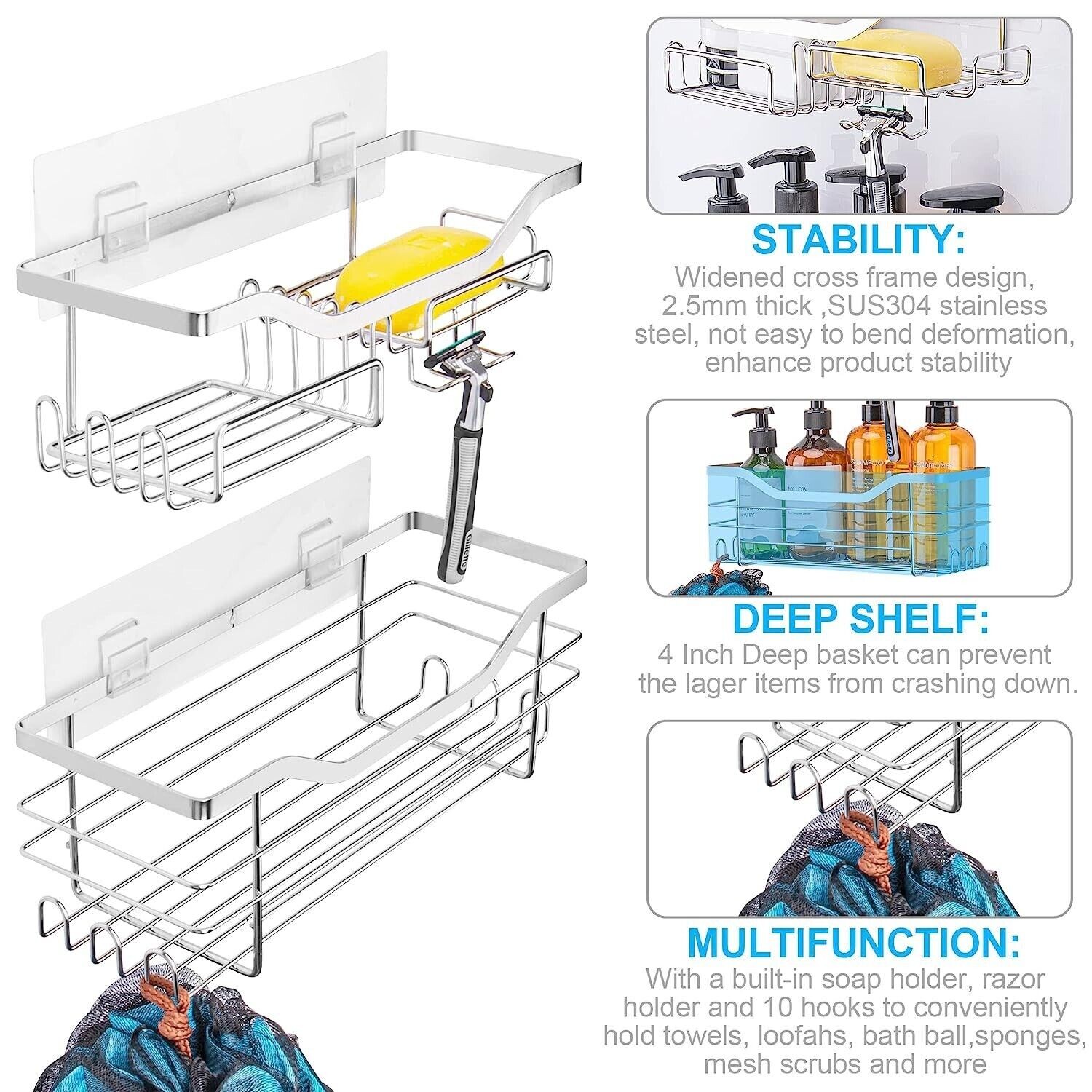 NEW Goutoports Shower Rack Organizer Bathroom Storage Shelf Wall Mounted 2 Pack