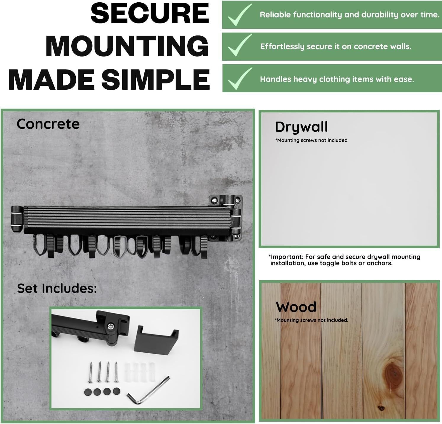 Wall Mounted Clothes Hanger Rack Laundry - Retractable & Collapsible Tri-Fold