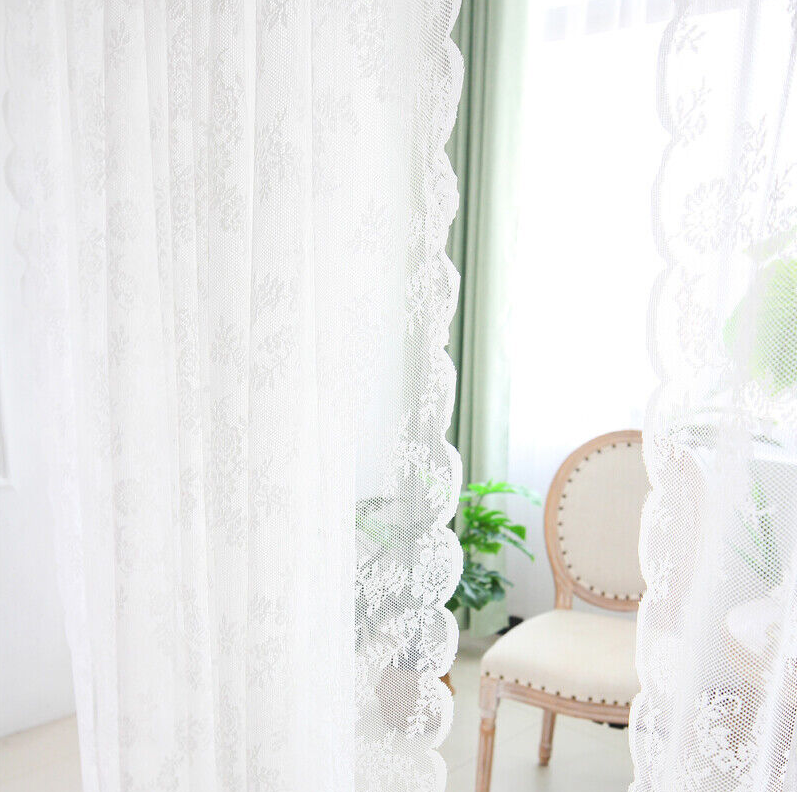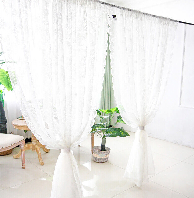 White Lace Sheer Panel Curtains Rod Pocket Window Tulle Voile Curtain Home Decor